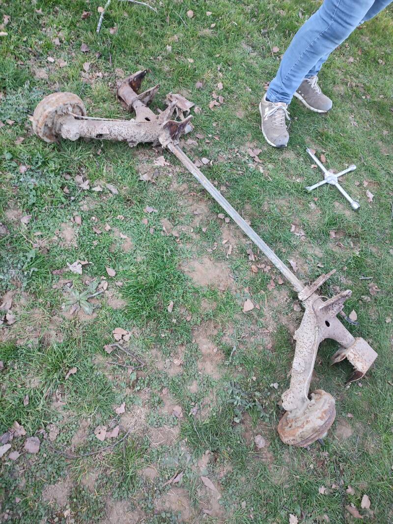 Par la même occasion, on a regardé plus en détail l'état du châssis, qui est moins abîmé que ce que l'on pensait. Les deux longerons arrières sont à remplacer, ainsi que le plancher avant. On a aussi essayé de se débarrasser de la mousse expansive dans les longerons. En essayant de la brûler... Sans grand succès à part une odeur pas très agréable à respirer. Si jamais vous avez une astuce, nous sommes preneur ! En attendant, on va essayer d'utiliser un produit pour la dissoudre car apparemment il y en a dans le secteur du bâtiment.